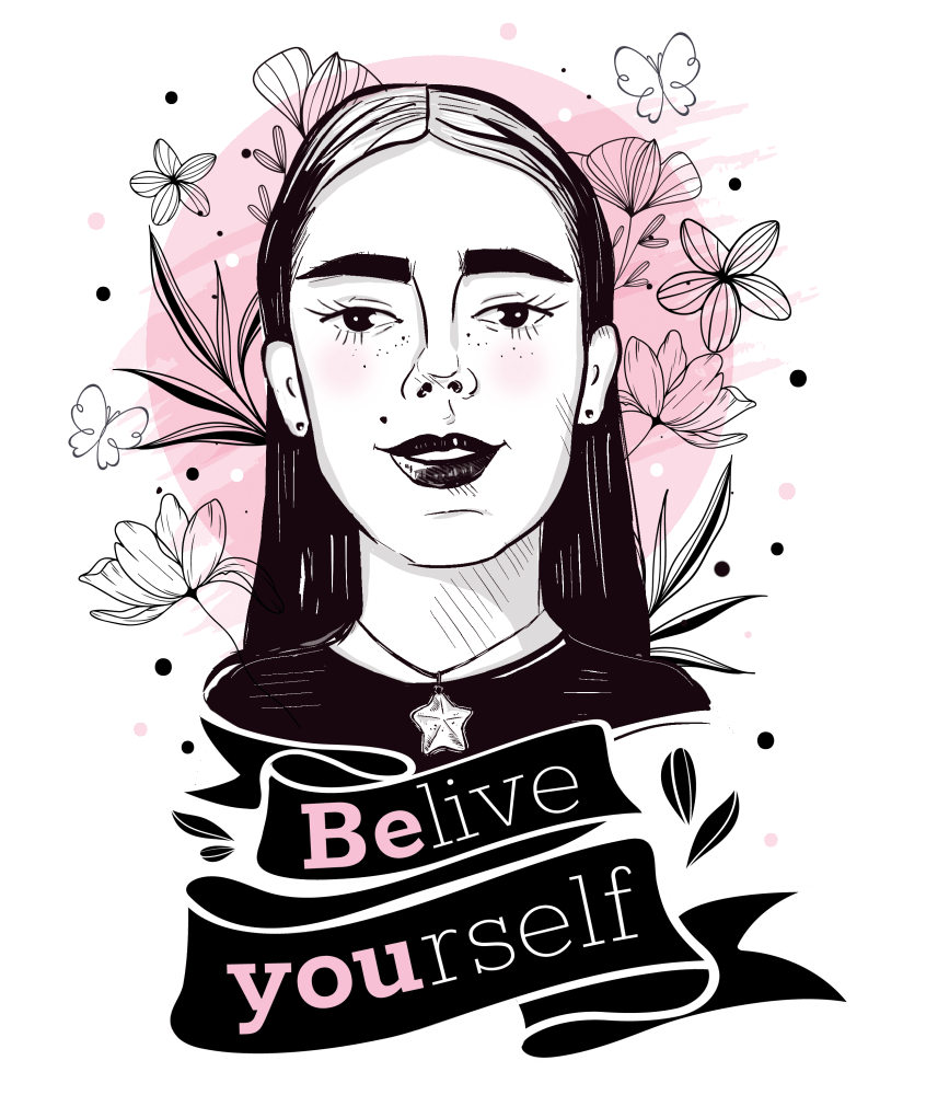 Razglednica BElive YOUrself je razglednica z dvojnim sporočilom, ki se spominja na to, da je prav BITI TI in VERJETI SEBI.