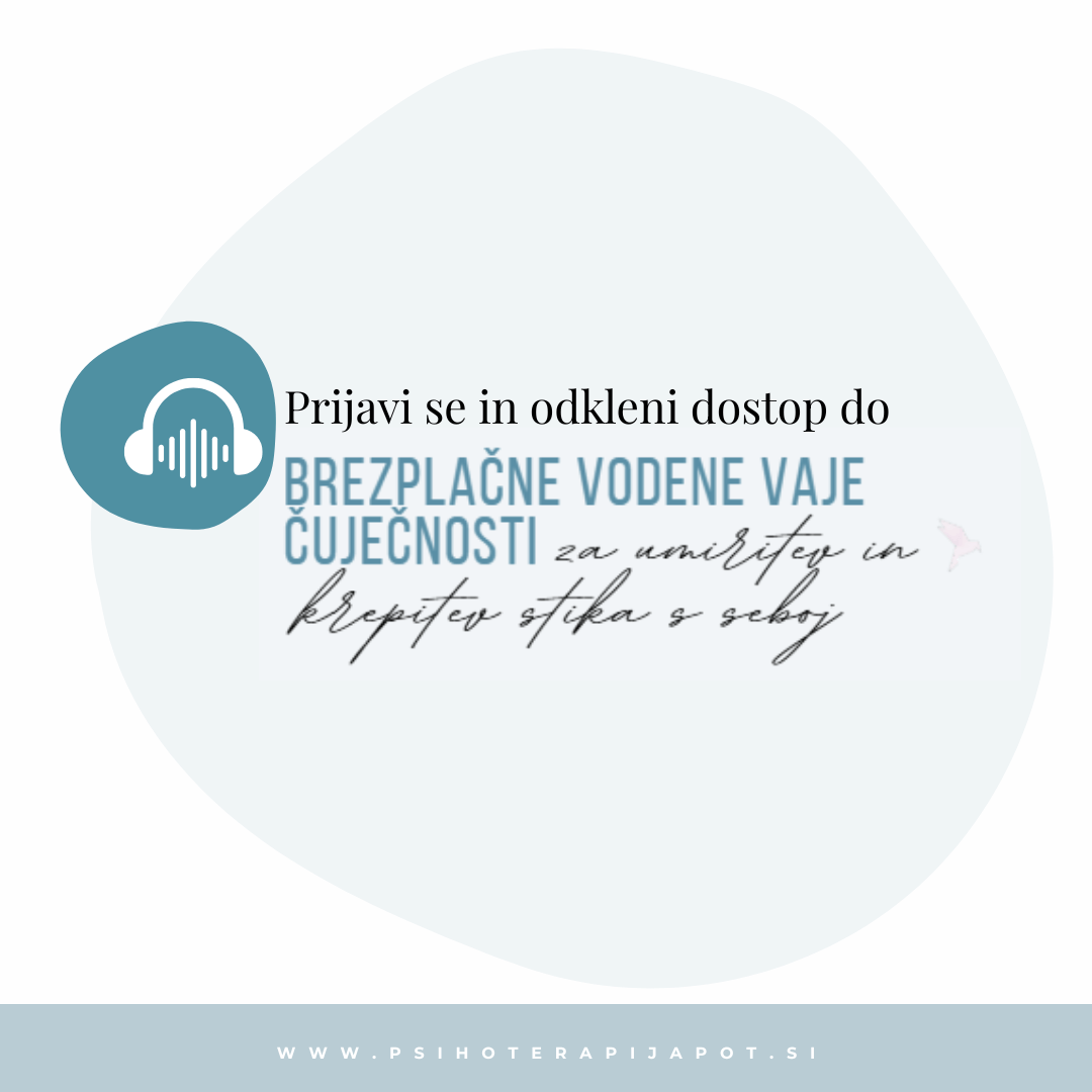 Pripravila sem ti brezplačno vodeno vajo čuječnosti – "Krepitev stika s seboj", ki ti bo pomagala: